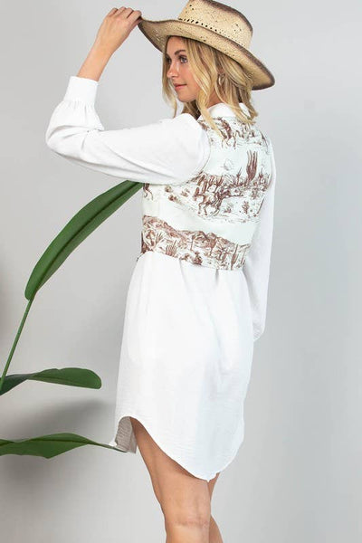 Experience the charm of the Wild West with Avery's Gabby Western Print Button Down Woven Vest. This unique dress merges style and comfort, offering a chic addition to your wardrobe. Inspired by the vibrant colors and patterns of the west, this woven vest showcases Avery's commitment to creating clothing that uplifts the soul and boosts confidence. This vest is more than just a piece of clothing - it's a best friend that's always there to create memorable moments with you.