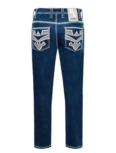 MEN'S COTTON/SPANDEX STRETCH FANCY SLIM STRAIGHT JEANS-RP500-503: 36